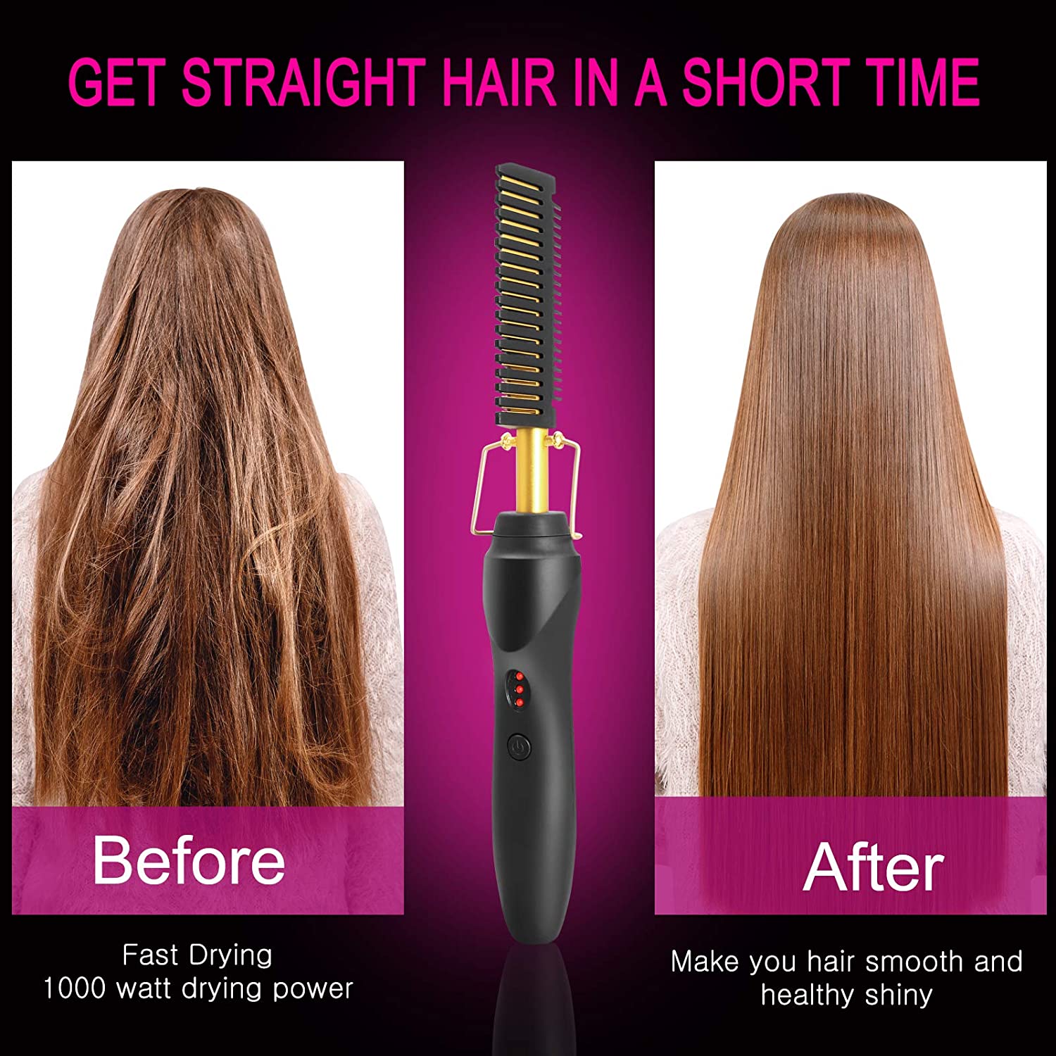 Introducing our revolutionary Hair Straightener Comb, the ultimate styling tool that effortlessly transforms your hair into sleek, straight locks with a single glide. Designed with cutting-edge technology and user-friendly features, our hair straightener comb is a must-have addition to your hair care routine.